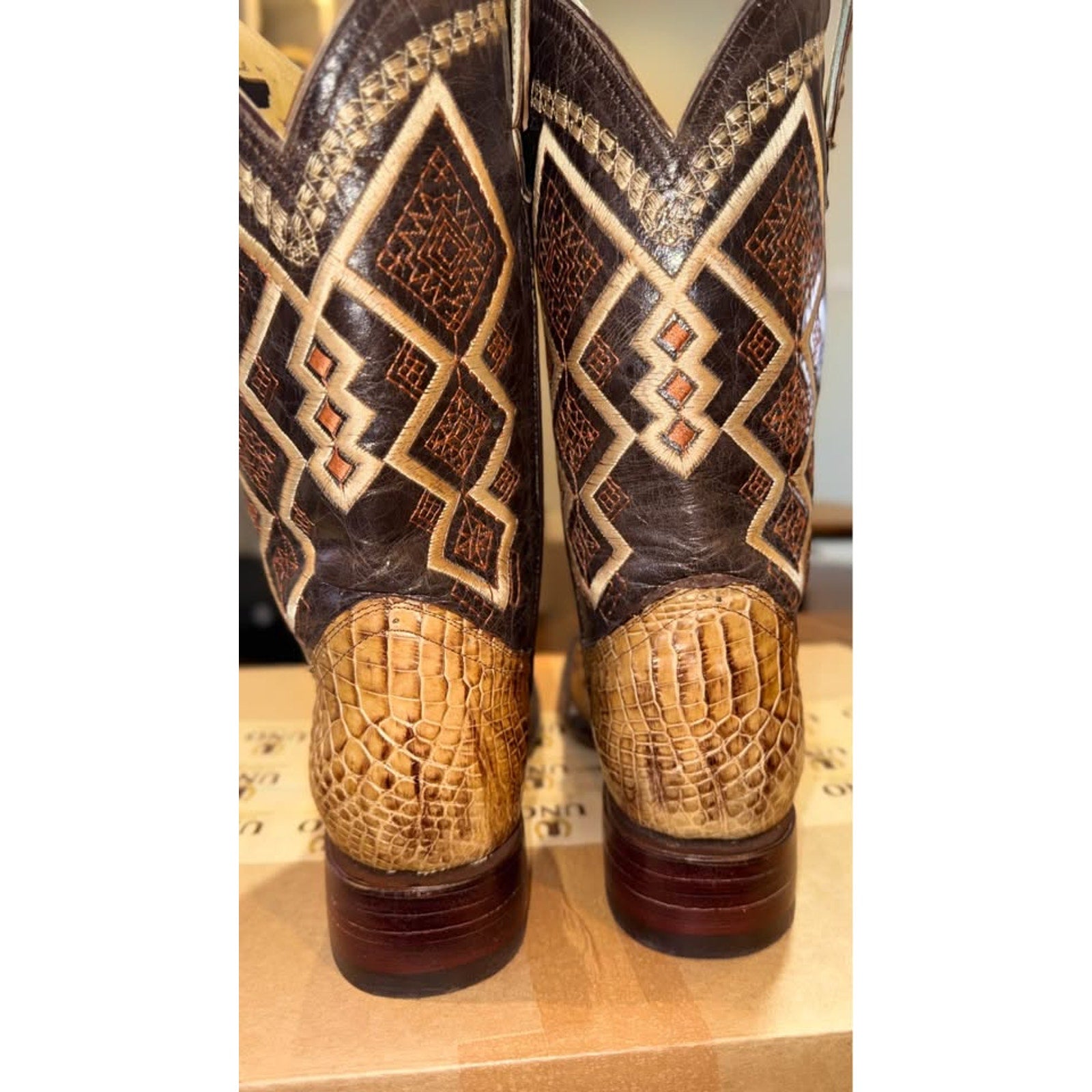 NEW exotic American Alligator hornback boots. These handmade boots are from Las Herraduras in El Paso. They are extremely well made and ready for you to slide them into your collection. Size 11D.